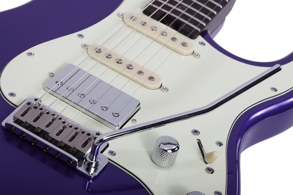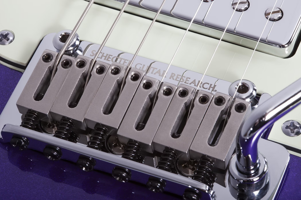 Bridge : Schecter Nouveau Tremolo with Music City Bridge Three String Tree String Retainer